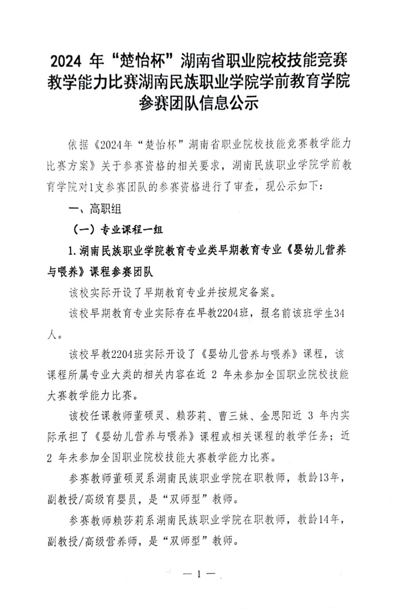 2024 年“楚怡杯”湖南省职业院校技能竞赛教学能力比赛伟德源自英国1946bevictor伟德参赛团队信息公示