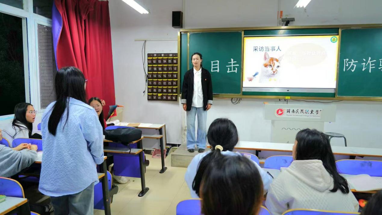 "骗子在虚拟视频里向母亲开口借钱时,如何辨别虚实?"宣讲员陈颖以启发式提问开启西藏班专场宣讲,通过情境模拟引导西藏学子剖析电信诈骗危害。小讲师娜扎开提创设"全民目击"互动剧场,邀请同学们演绎受骗场景,在角色扮演中掌握"三不一多"反诈口诀。德庆拉姆创新采用"受骗访谈录"形式,配合PPT讲解,将真实受骗经历转化为生动警示教材。